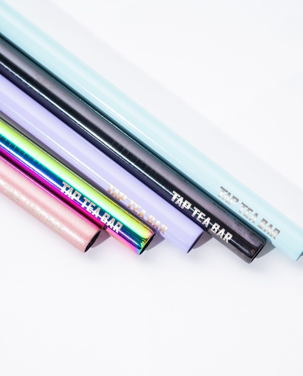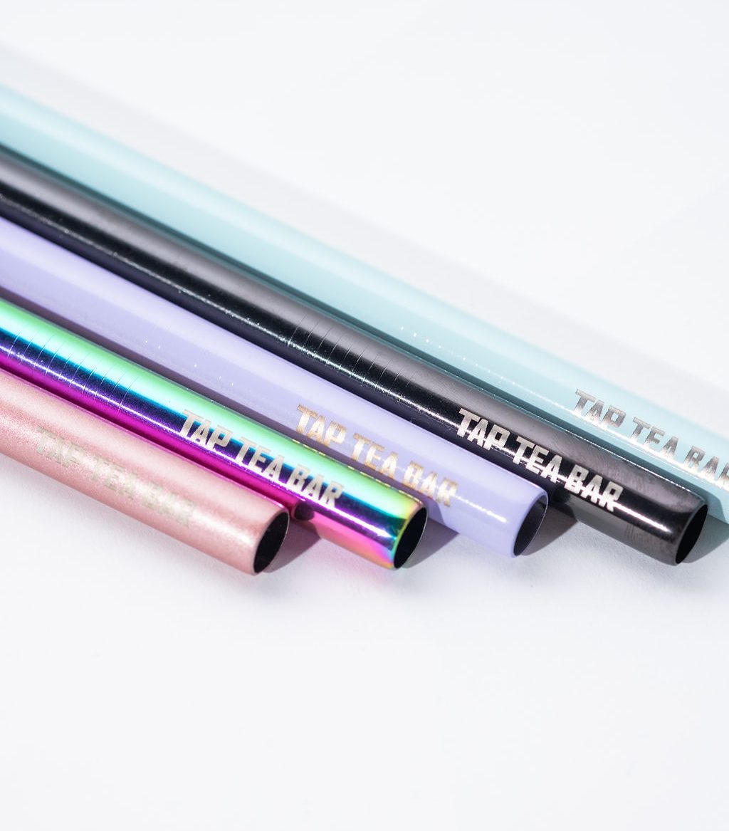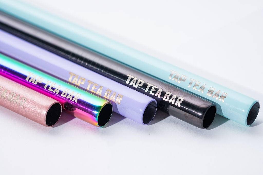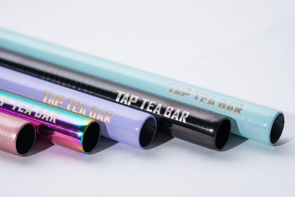 These stylish reusable straws for boba tea come in a variety of colors. Each straw has “TAP TEA BAR” printed along the side to represent your favorite boba tea shop! These wide straws are perfect for sipping boba pearls from your favorite bubble tea, and their reusable nature makes them an eco-friendly alternative to disposable straws.